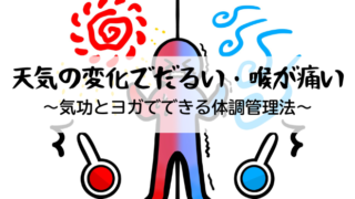 天気 天気の変化でだるい・喉が痛い…気功とヨガでできる体調管理法 最近の天気や寒暖差で体調不良を感じていませんか?気功・ヨガインストラクターの視点から、寒暖差疲れや自律神経の乱れを整えるセルフケア方法をご紹介します。 天気